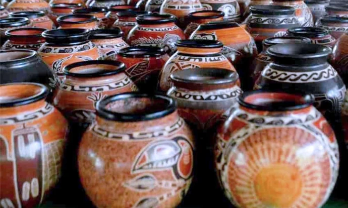 colliers de graines, calebasses décorées ...